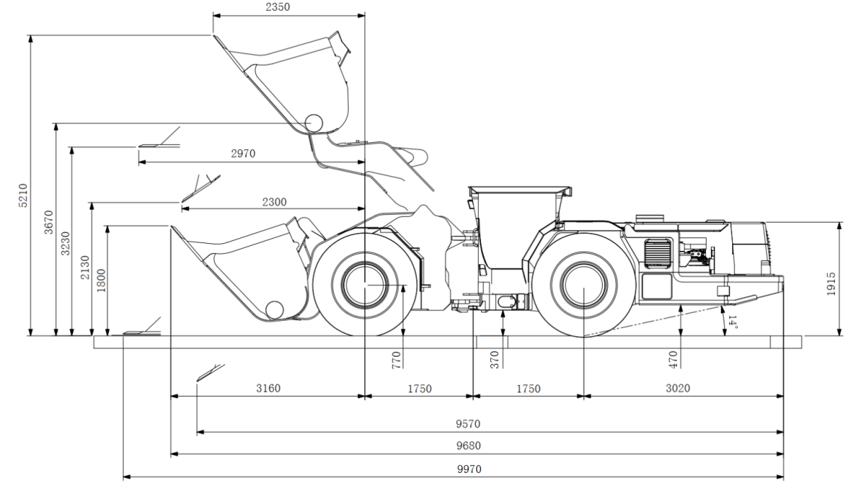 The WJ-4 loader is 4.5m³ (10 ton) capacity Load Haul Dump (LHD) designed to offer superior productivity. With stronger boom, high breakout forces and high lift, WJ-4 provides fast bucket filling and shorter cycle times. The advanced powertrain technology includes a proven transmission with reliable gear shifting and torque converter ensuring fast ramp speeds to quickly clear tunnel headings. Durable axles use limited slip differentials to maintain traction and spring applied hydraulic release brakes for safer braking.