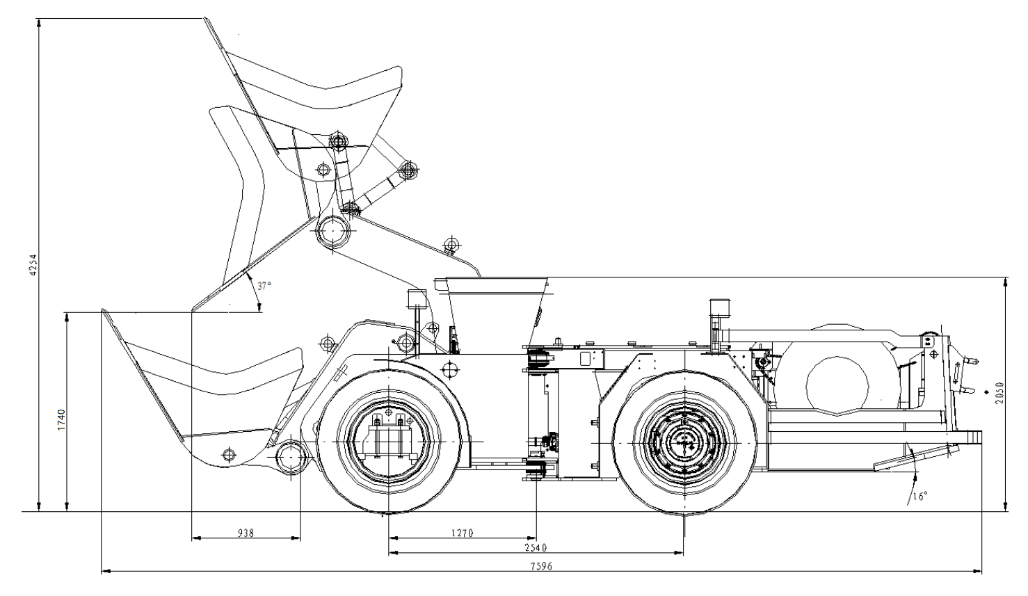 The WJD-2.5 is a new compact 2.5m³ (5 ton) capacity Load Haul Dump (LHD) for narrow vein mining. Best payload to own weight ratio in its class. It offers both reduced dilution, better flexibility and operator safety when working in narrow vein operations.